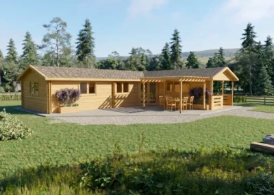 Si buscas una casa de madera para vivir que combine amplitud, calidez y un diseño con personalidad, el modelo Alicante de DSAVIA es una de las opciones más completas del mercado. Con sus 110 m² construidos distribuidos en planta con forma de L, esta vivienda prefabricada de madera ofrece seis estancias independientes, terraza de casi 12 m² y un tejado clásico a dos aguas. Fabricada con madera de calidad y con múltiples opciones de personalización, es una solución real para quienes quieren vivir en una casa de madera sin renunciar al confort ni al estilo.