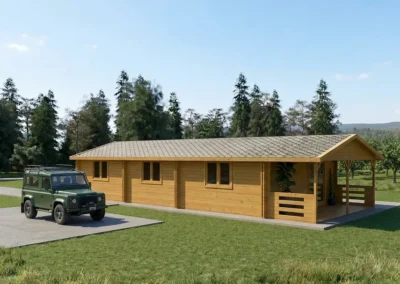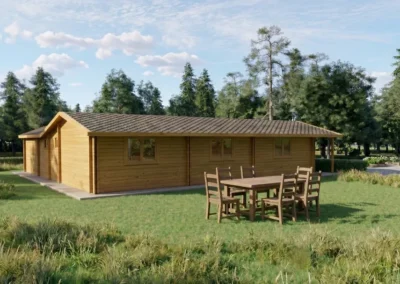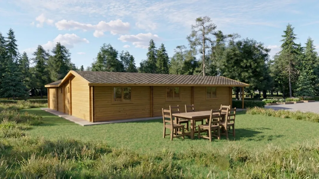 - Totalmente personalizable: puedes modificar acabados, materiales del tejado, grosor del suelo, contraventanas y más.