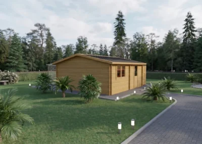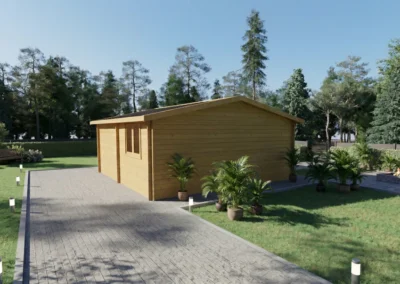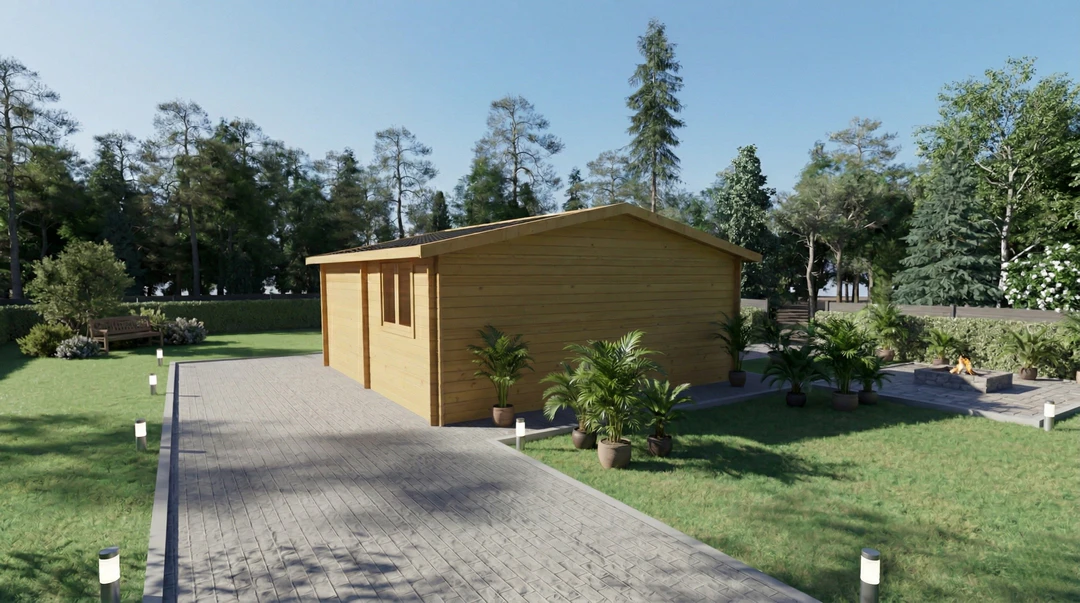 Si buscas un garaje de madera para dos coches que combine amplitud, resistencia y estética, el modelo Garage Double de DSAVIA es una solución que merece tu atención. Con 35,4 m² de superficie útil distribuidos en una planta única de 5,95 × 5,95 m, ofrece espacio suficiente para aparcar dos vehículos con holgura. Su diseño de tejado a dos aguas aporta un aspecto clásico que encaja en cualquier parcela. Fabricado en madera de alta calidad, incluye ventanas con doble acristalamiento, puerta lateral independiente y puertas de garaje dobles. Disponible desde 3.999 € (IVA incluido), con opciones de personalización en grosor de pared, suelo y cubierta.