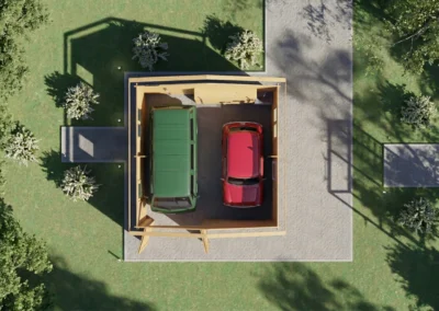 - Familias con dos vehículos que necesitan un garaje cerrado, protegido de la intemperie y estéticamente integrado en su parcela.
